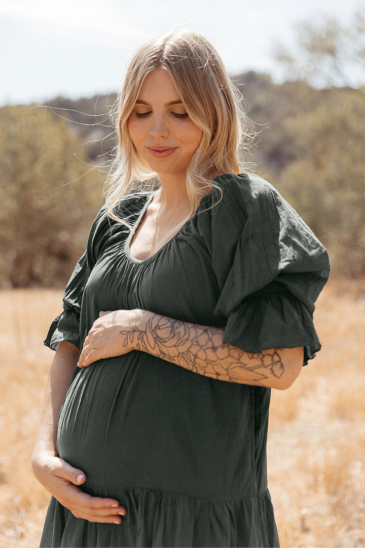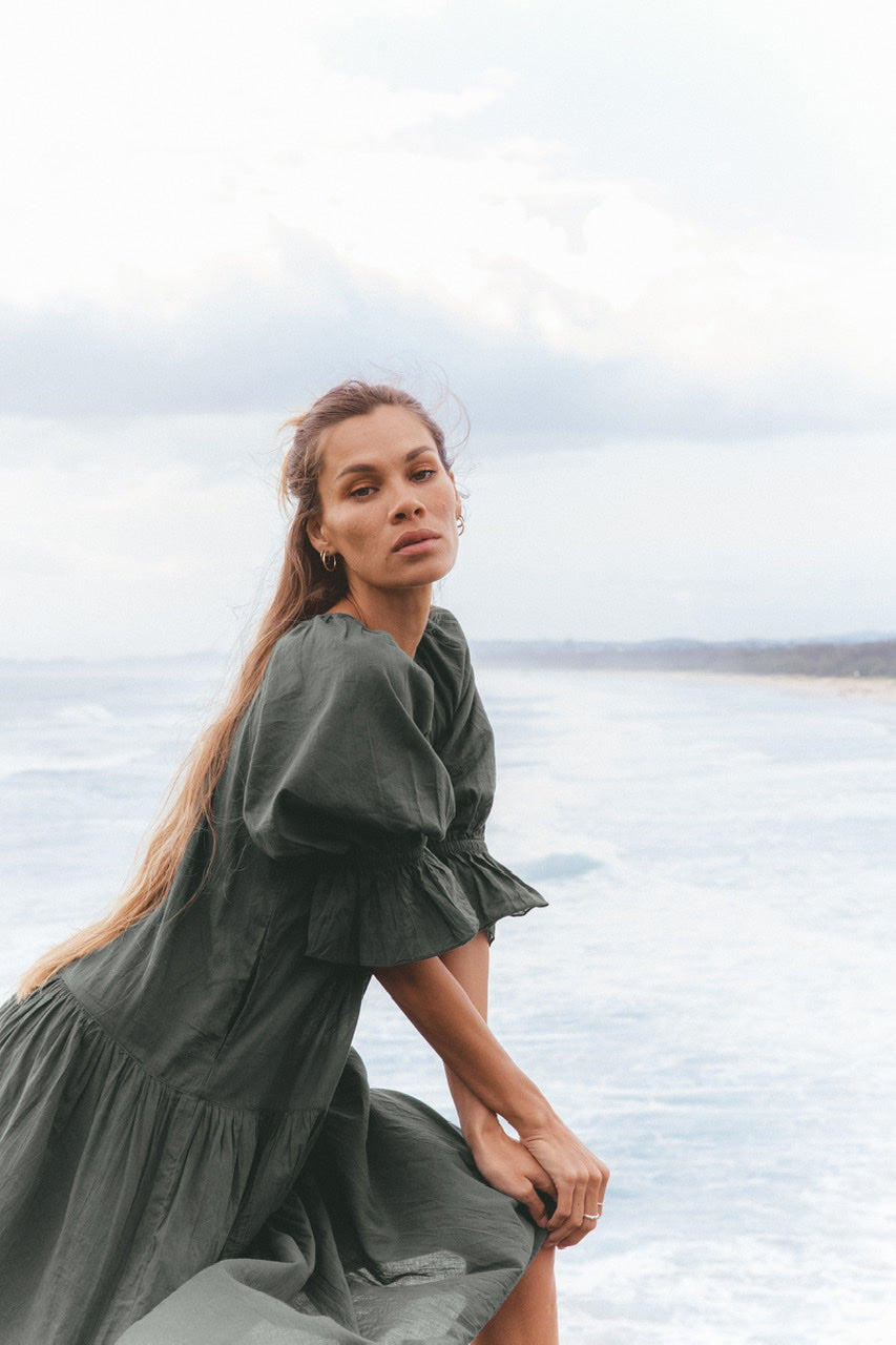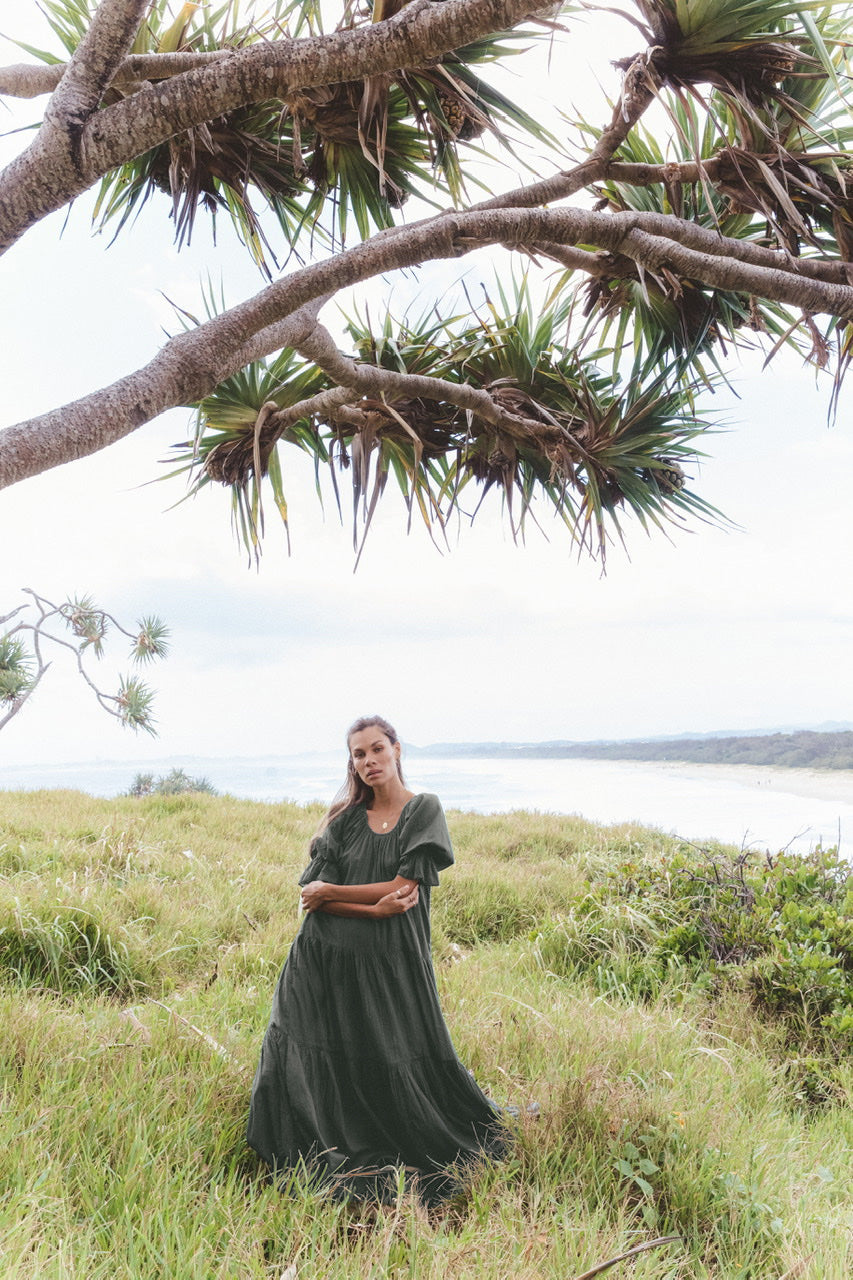 The elegance of our Sahana Gown is sure to evoke the inner goddess making everyday wear effortless. This timeless design is featured in a tiered silhouette with a soft round neckline, pockets, and puff sleeves for added shape and character.